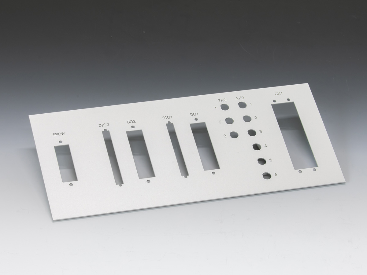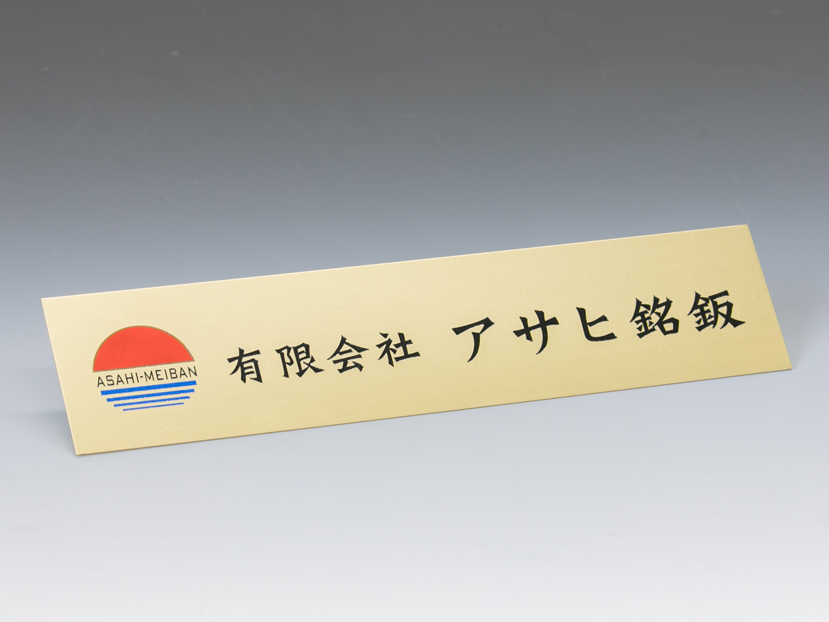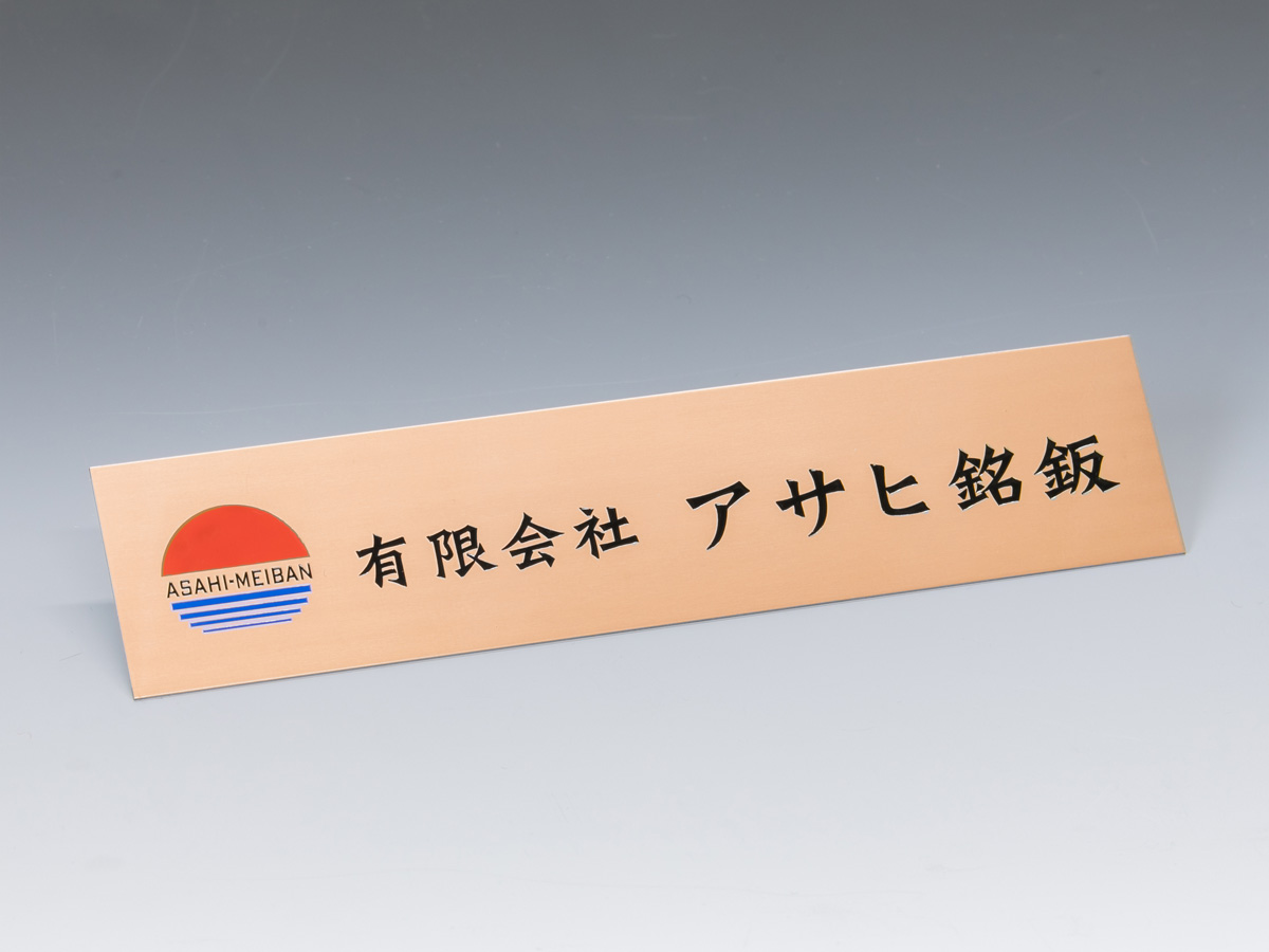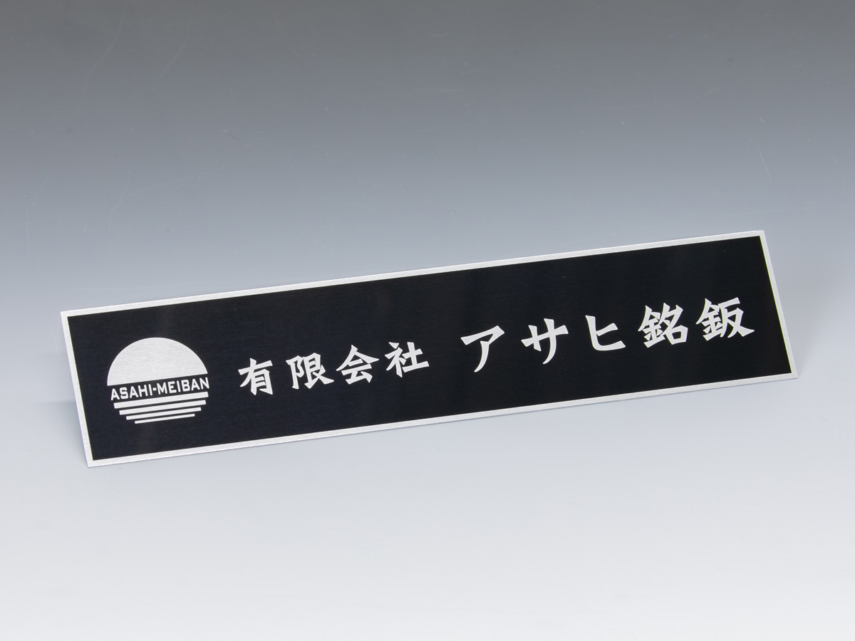 エッチングとは違い、アルミに染料を浸透させるため凹凸がなく緻密な文字・図形等が表現でき、金属感を生かした多彩な着色が得られます。また平滑でヨゴレが付きにくい特徴がありますが、耐候性が良くないので屋内使用に向いています。