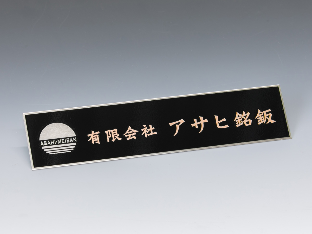 エッチング銘鈑は、金属(ステンレス・真鍮・銅・アルミ)を局部的にエッチング(腐食)させることにより凹凸を形成し、塗料を入れることにより製作した銘鈑です。